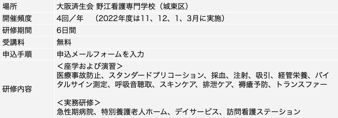 ※系列の大阪済生会 中津看護専門学校も再就職支援研修を行っています。