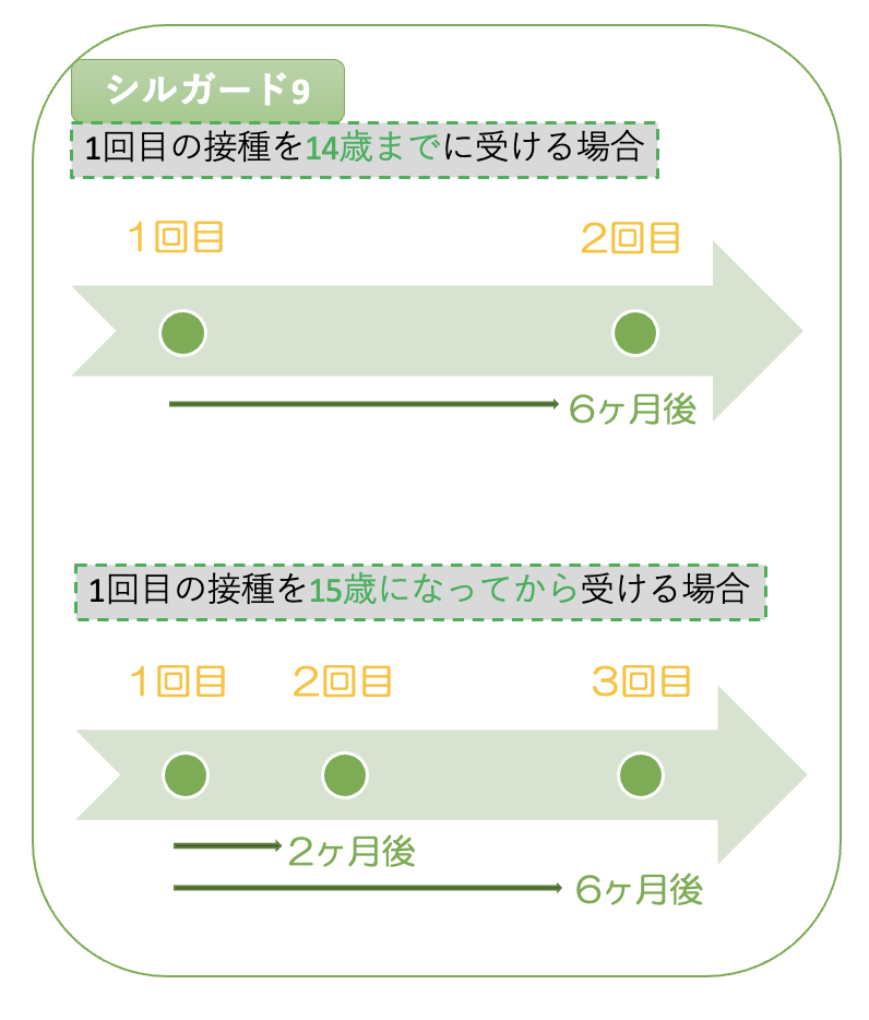 また、2023年4月より9価ワクチンのシルガード9も定期接種の対象になりました。そのため、対象年齢の人は公費(無料)で接種することが可能です。