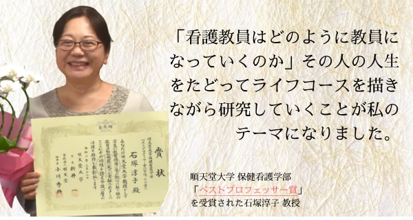 今回のインタビューでは、順天堂大学 保健看護学部 基礎看護学の石塚淳子教授にお話を伺いました。石塚先生は、看護教員の力量形成や教育方法についてその人の人生を語っていただくライフコースアプローチを用いて研究し、多くの看護師を育ててきました。