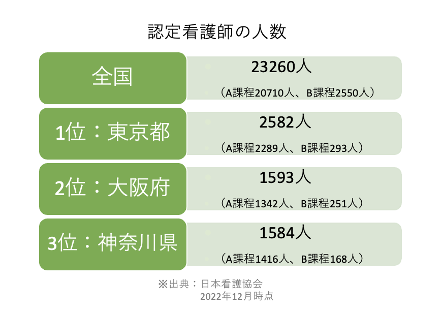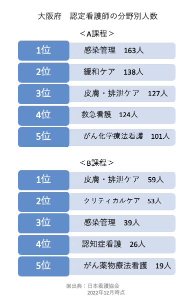 大阪府は東京都に次いで認定看護師の人数が多く、看護の質を高めている地域といえるでしょう。