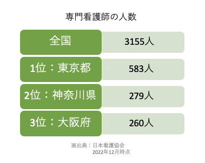 大阪府で働く専門看護師の人数は以下の通りです。