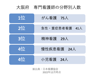 大阪府で働く専門看護師の人数は以下の通りです。